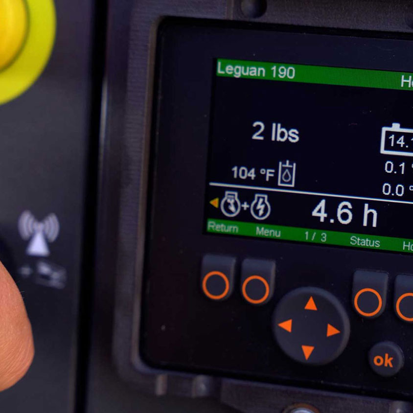 Sowohl die Sicherheitsmerkmale als auch die proportionale Reichweiteüberwachung werden von einer modernen Maschinensteuerung kontrolliert und ermöglichen die höchsten Sicherheitsstandards kombiniert mit die konkurrenzlose Reichweite in allen Situationen.